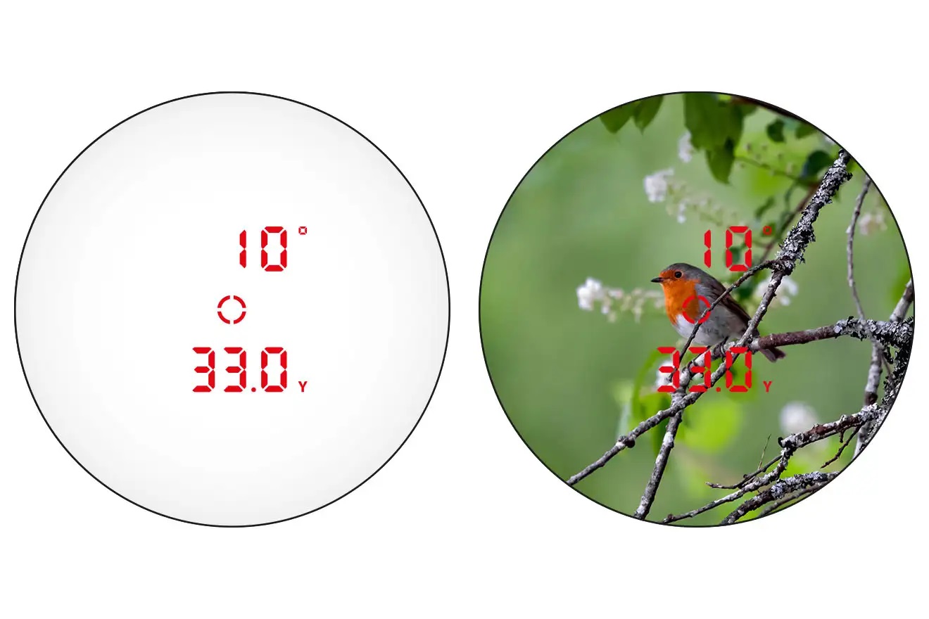 Know how close you are to your target – the built-in rangefinder measures the distance to animals, buildings and other objects with precision, up to range of 1828 metres.