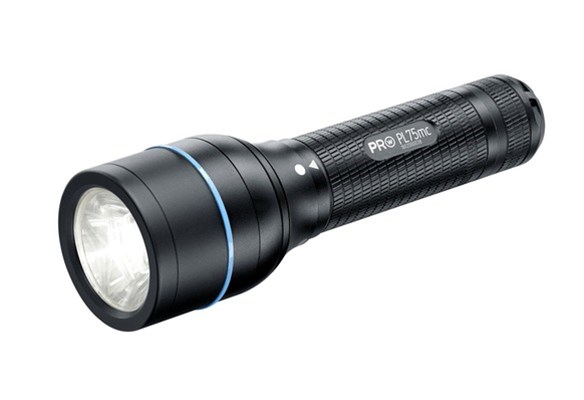 Four in one: The PL75mc (mc for multicolor) has a 360° rotating head (chip: XML-RGBW) that can quickly switch between white, red, green and blue. White can be up to 210 lumens, red is for protecting the user’s night vision, green is invisible to game, and blue is for detecting fluids. Like all Pro flashlights, the PL75mc features a multi-battery system. Two CR123 batteries are supplied, and other possibilities include AAA batteries (regular or rechargeable) and an ICR 18650 rechargeable battery. The proven Pro switching sequence shifts between three output levels (100, 40 and 10 percent) as determined according to the ANSI FL1 standard plus a Tactical Defense Strobe for protection against attackers. Splashwater protected as per IPX4, with holster.